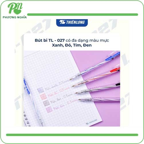 Bút bi Thiên Long TL-027 là dòng bút bi phổ thông được sử dụng rộng rãi nhờ giá thành rẻ, chất lượng ổn định và khả năng viết mượt. Đây là lựa chọn lý tưởng cho nhu cầu ghi chép hàng ngày trong học tập và công việc.