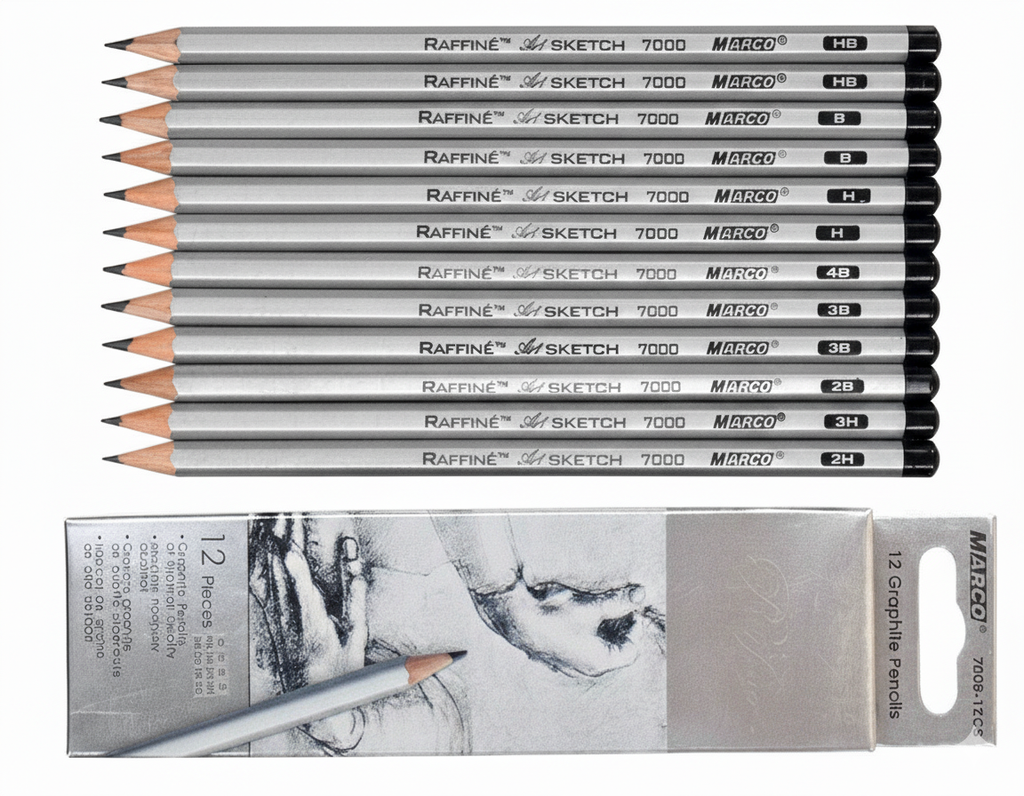 Bút chì đen Sketch chuyên nghiệp, 7000-12CB F/HB/2B/3B/4B/5B/6B/7B/8B chính hãng Marco: