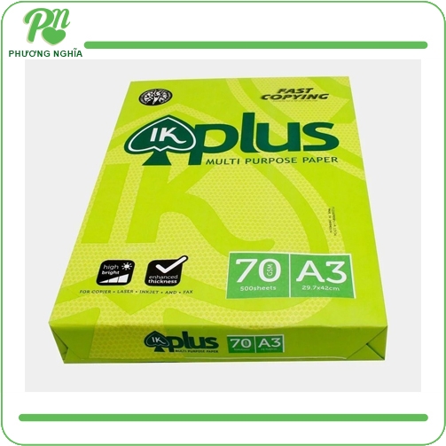 Giấy In A3 IK Plus 70gsm – Trắng Sáng, In Mượt, Không Kẹt Giấy