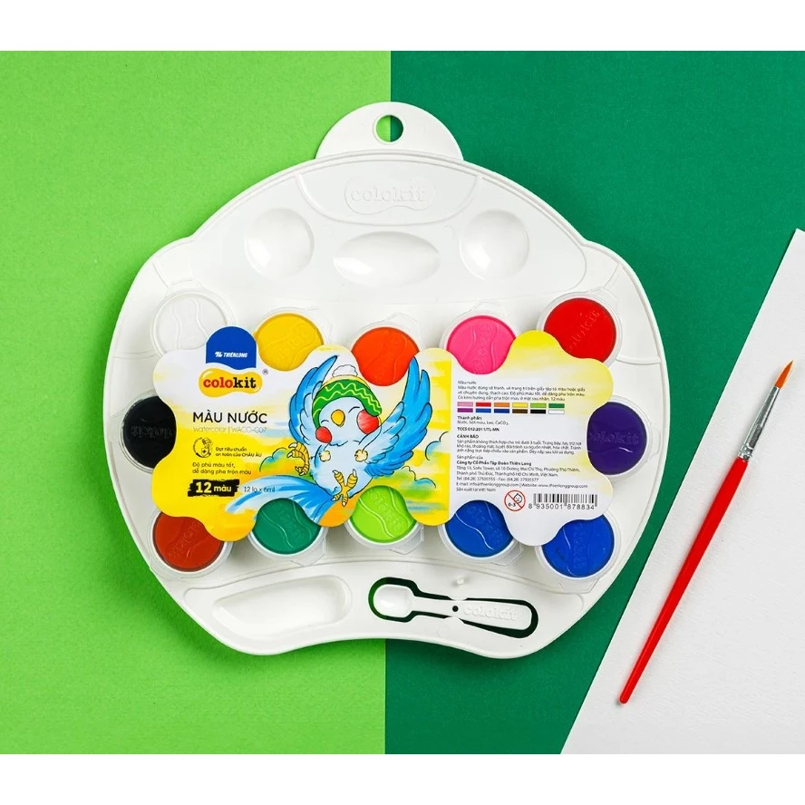 Màu nước Thiên Long Colokit WACO-C07 (12 màu) là dòng màu nước dạng hũ (lọ) rất phổ biến cho học sinh tiểu học tại Việt Nam, đặc biệt là trong các bài vẽ thủ công hoặc mỹ thuật tại trường.