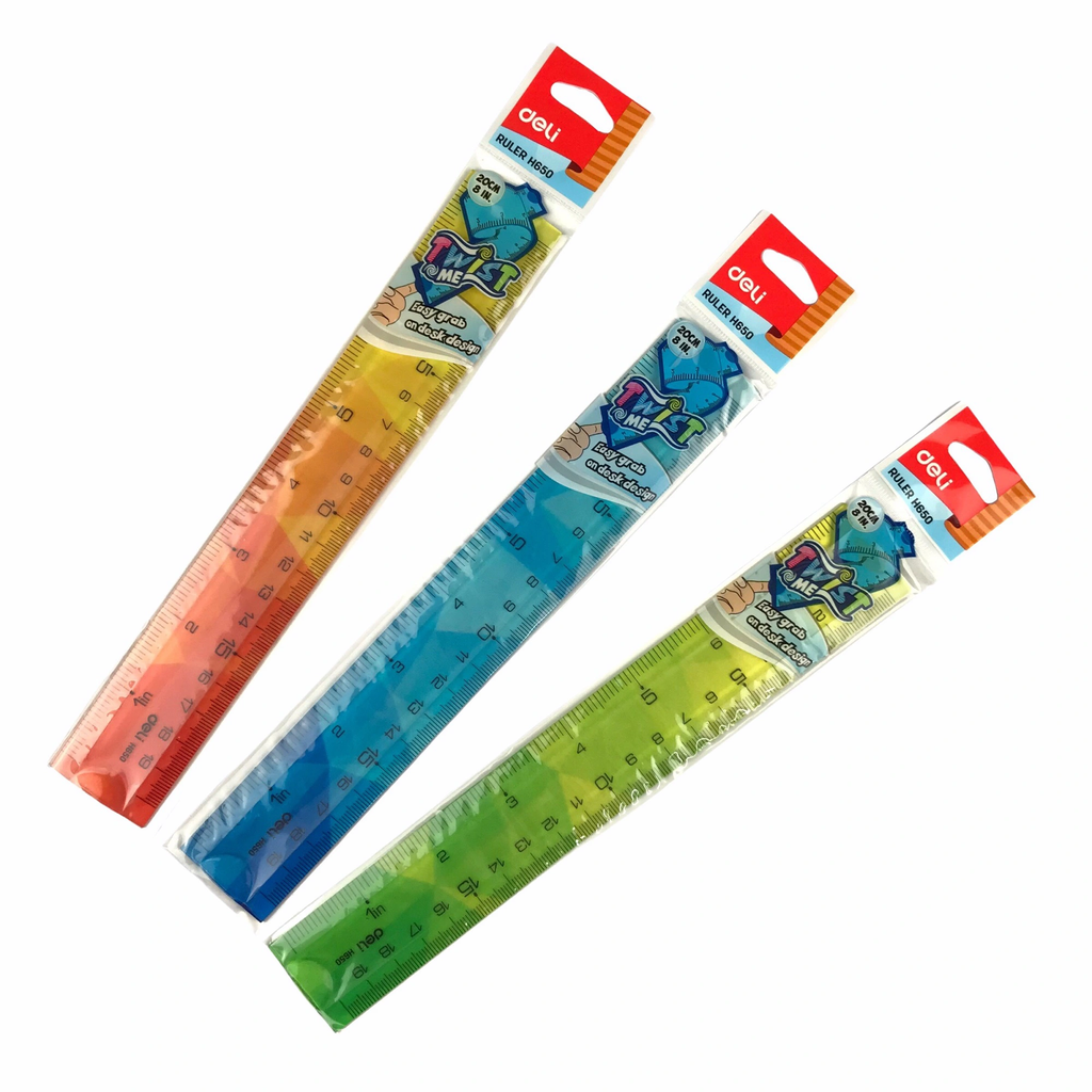 - Chất liệu nhựa Eco-PVC cao cấp: Thước được làm từ nhựa dẻo siêu bền, có khả năng chống gãy vỡ ngay cả khi bị uốn cong hoặc xoắn mạnh.