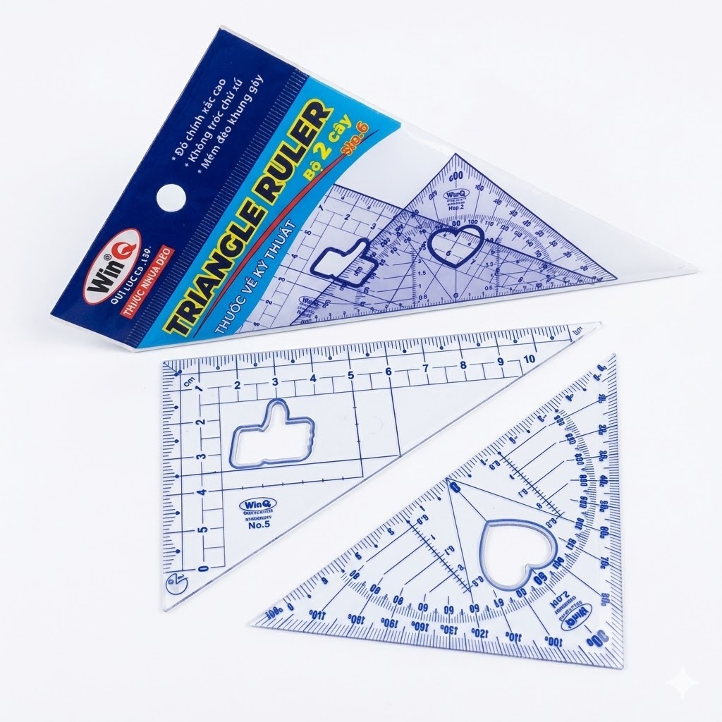 - Quy cách đóng gói (H50): 1 hộp chứa 50 bộ (mỗi bộ gồm 2 cây thước eke).