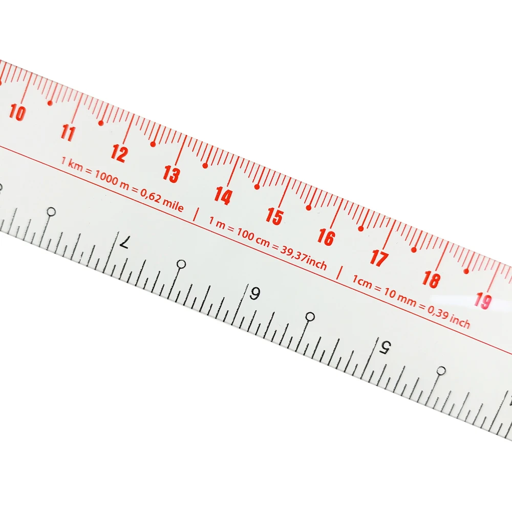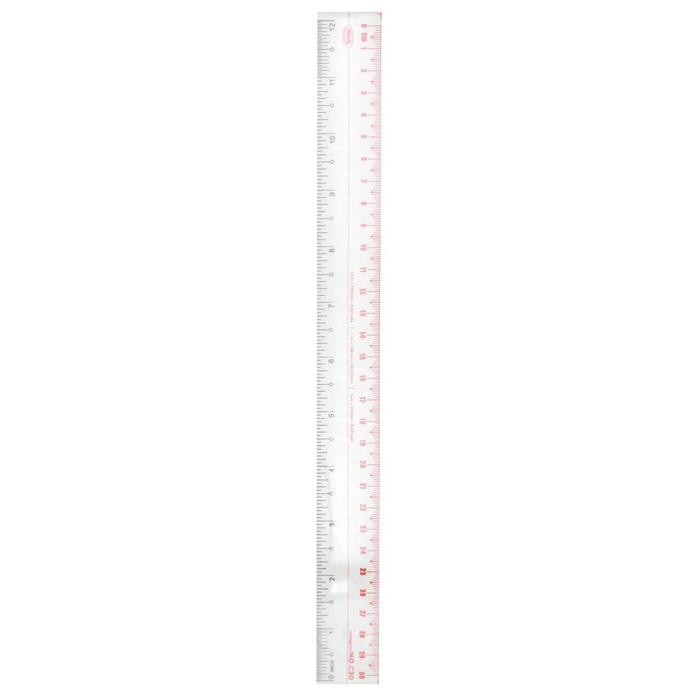 - Vạch chia chính xác: Các vạch kẻ và chữ số được in rõ ràng, khó phai mờ theo thời gian. Thước thường tích hợp cả hai đơn vị đo là cm (màu đỏ) và inch (màu đen).
