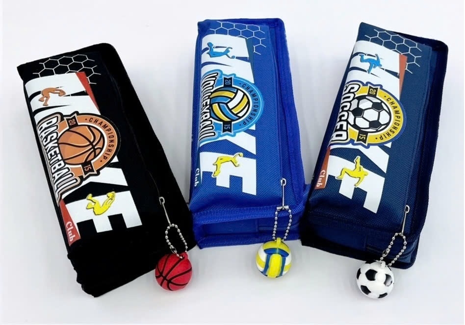 đây là sản phẩm túi đựng bút vải thể thao phong cách năng động, thường đi kèm với móc khóa hình quả bóng tương ứng.
