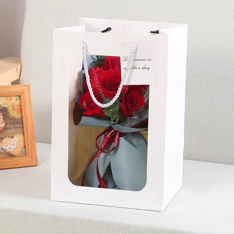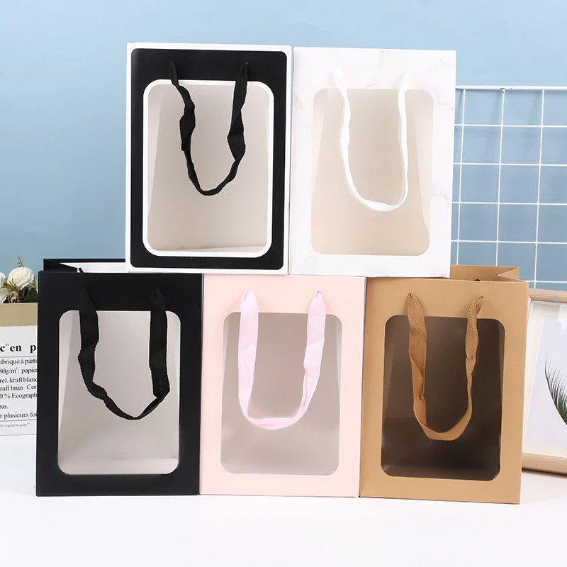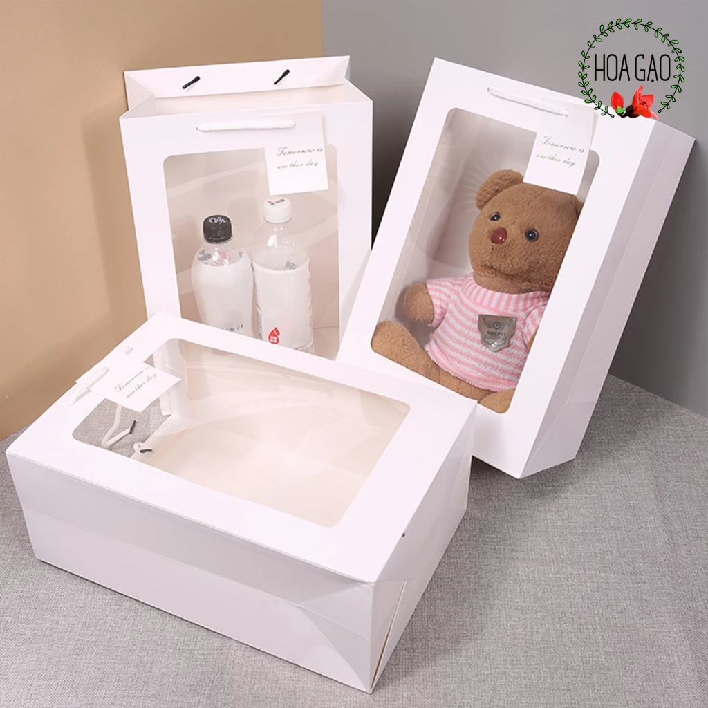 - Thiết kế: Túi có một mặt trong suốt bằng nhựa mica hoặc PET giúp nhìn rõ sản phẩm bên trong, tạo vẻ sang trọng và tinh tế cho món quà.